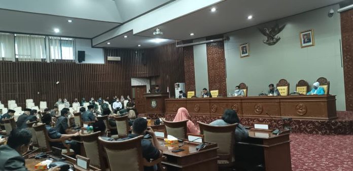 BENGKULU, jendelarakyat.com – Rapat Paripurna ke-11 dengan agenda jawaban Fraksi-fraksi Dewan Perwakilan Rakyat Daerah (DPRD) Provinsi Bengkulu terhadap pendapat Gubernur Bengkulu atas rancangan peraturan daerah (Raperda) Inisiatif tentang Penyelenggaraan Keolahragaan, di Ruang Rapat Paripurna DPRD, Senin (21/2/22).