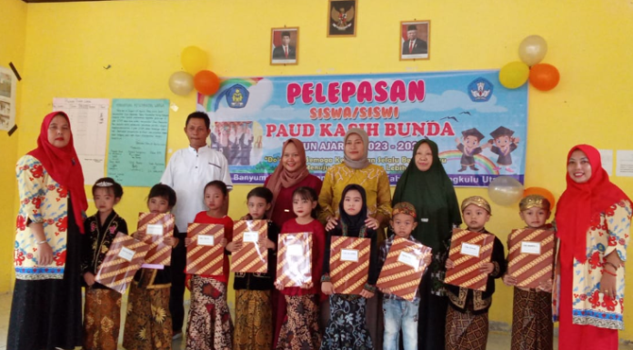 Bengkulu Utara, Jendelarakyat.com – Menyempatkan waktu disela-sela kesibukannya sebagai Kepala Desa Banyumas Baru, Kades Bambang Hermanto menghadiri acara perpisahan atau wisuda peserta didik PAUD Kasih Bunda.