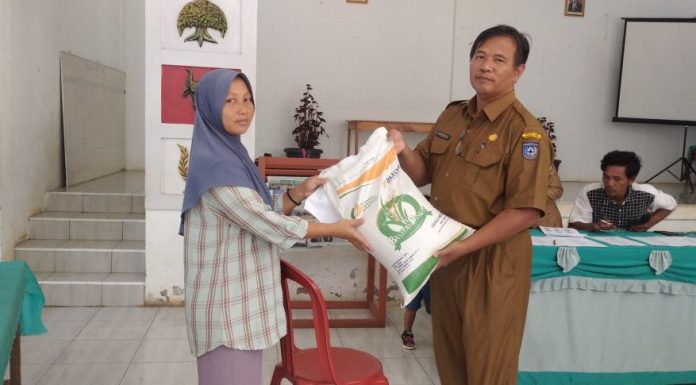 Bantuan Pangan Cadangan Beras Pemerintah (CBP) ini diserahkan langsung oleh Sudirman Kepala Desa Kertapati kepada 87 orang penerima.